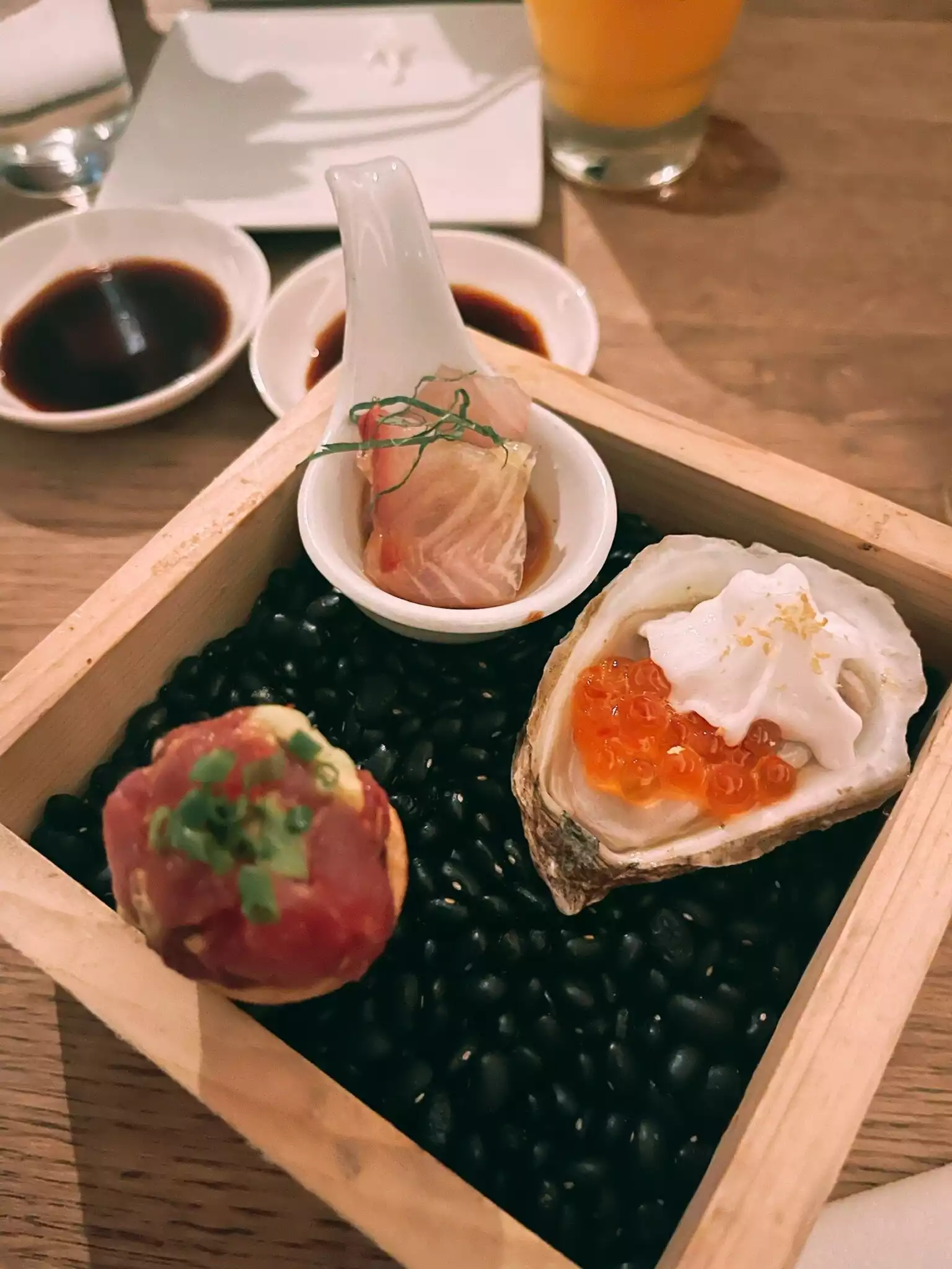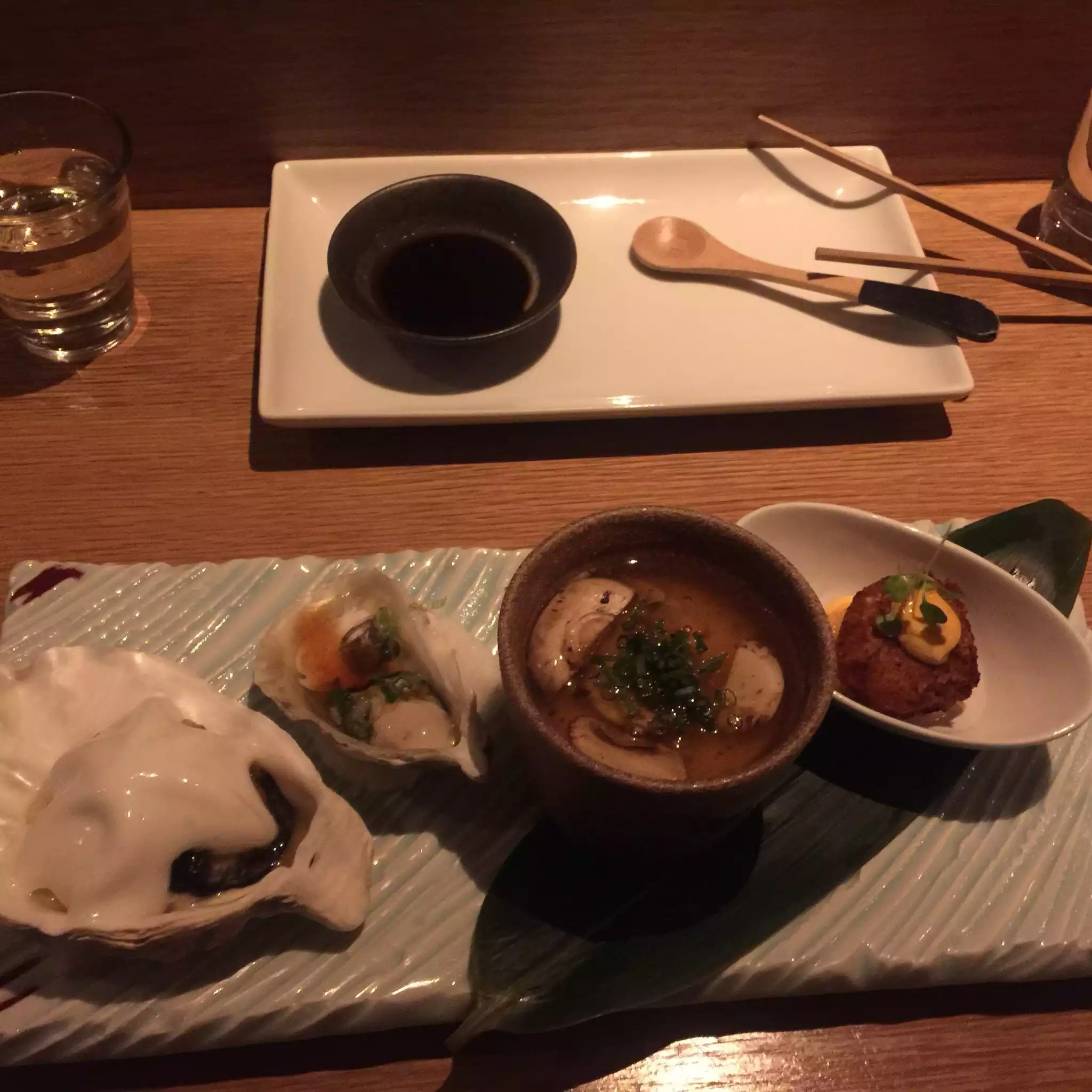 Amazing atmosphere! Very intimate - hidden spot. Amazing sushi and oysters. Chicken options are amazing too! The champagne was a great touch. Definitely will go again.