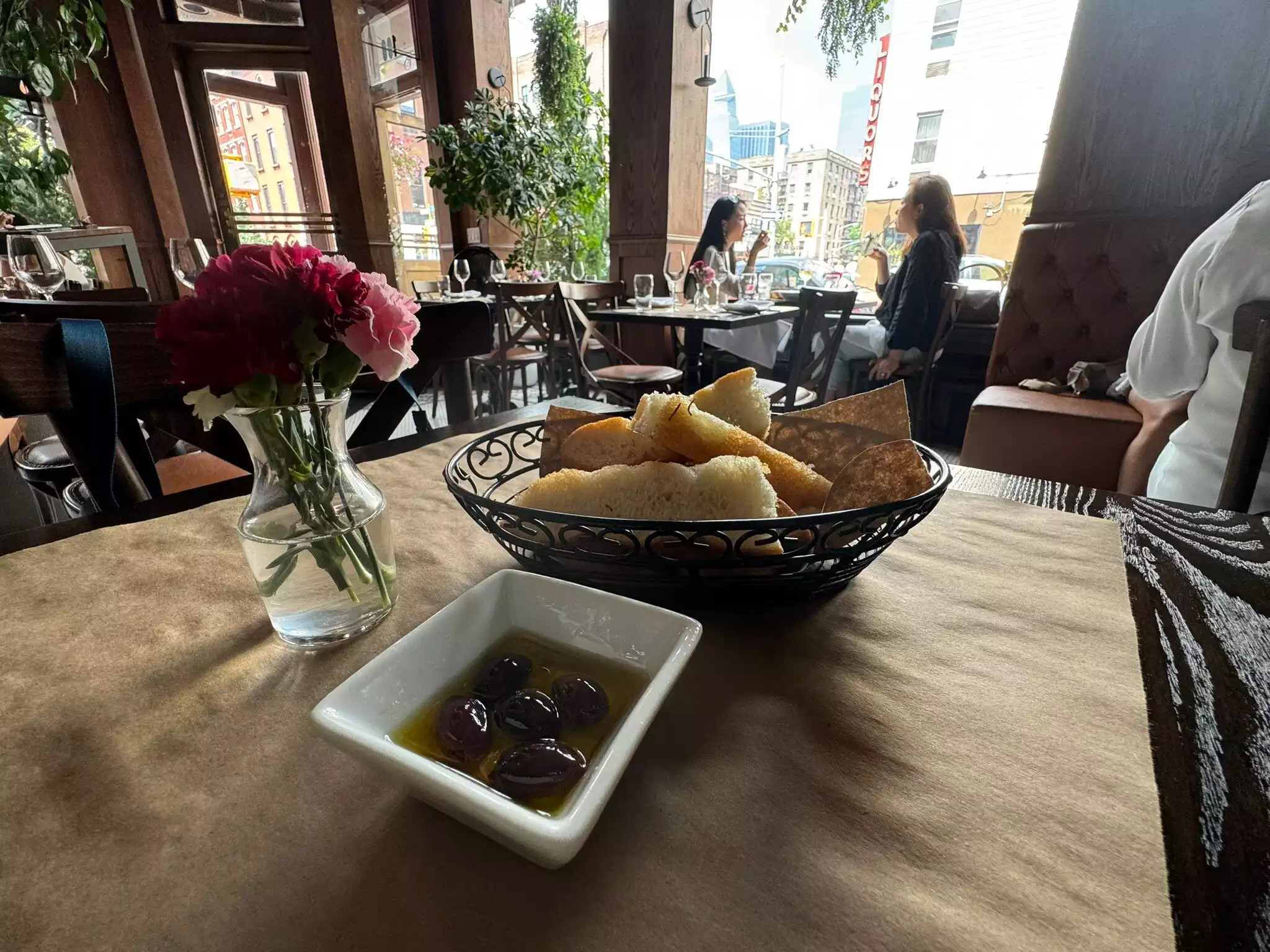 Sooo good! The bread was served with olive oil with whole olives. We started with the crab salad appetizer, which was fresh and delicious. Then my dining partner had the lobster eggs Benedict and I had the Tonno. They were both good portion sized and thoroughly enjoyed. My tuna was prepared rare, as requested, with a fantastic miso style sauce. Seared pepper tuna is one of my fav meals and they didn’t disappoint! We each had a cocktail then split a bottle of wine. The recommended white wine was a perfect pair. What really made the meal was the awesome attitude and service from our server Giulia! She was knowledgeable, friendly and a joy to have as our dining guide! Highly recommend!