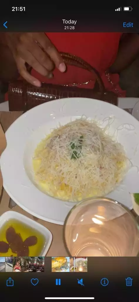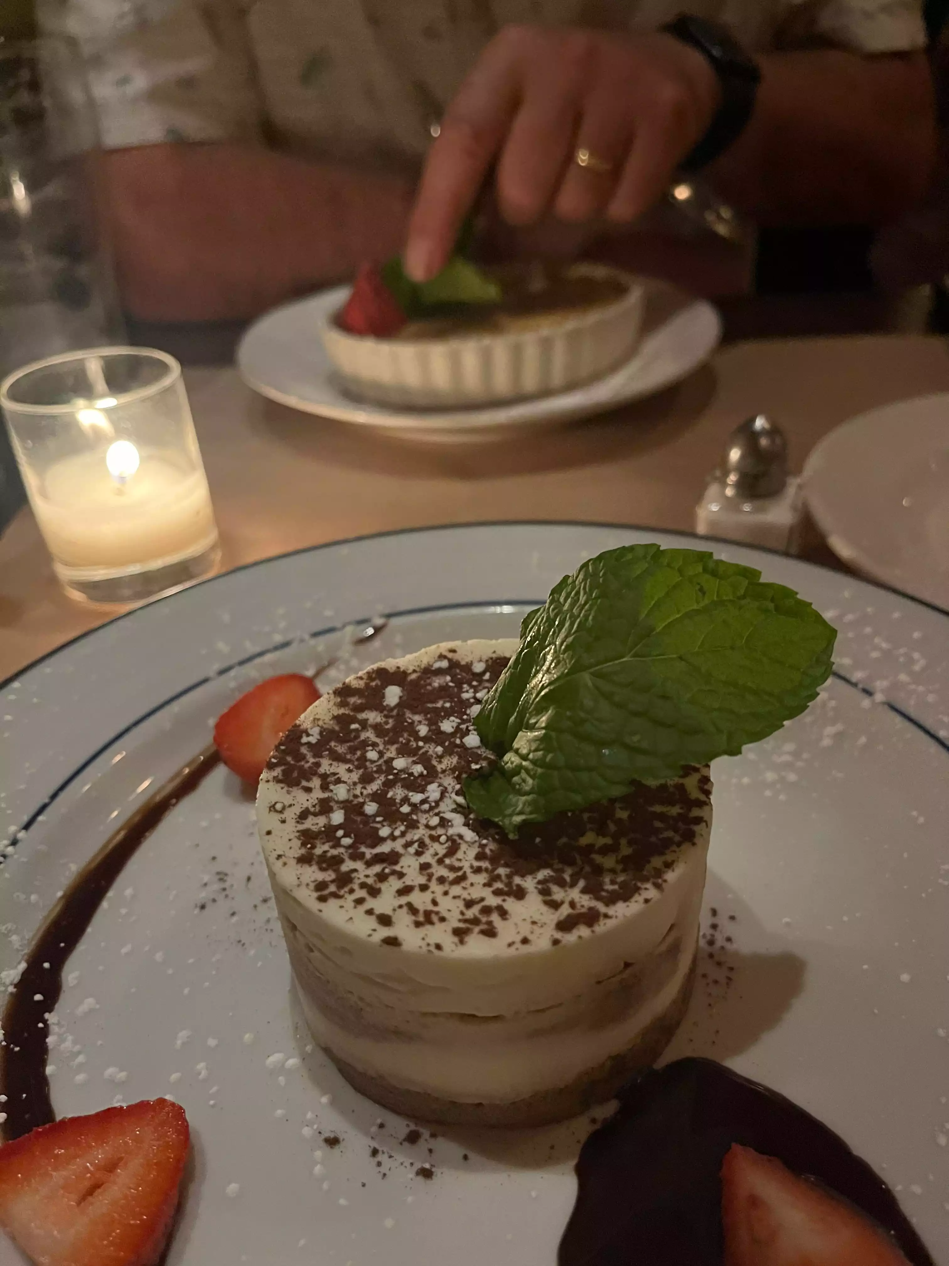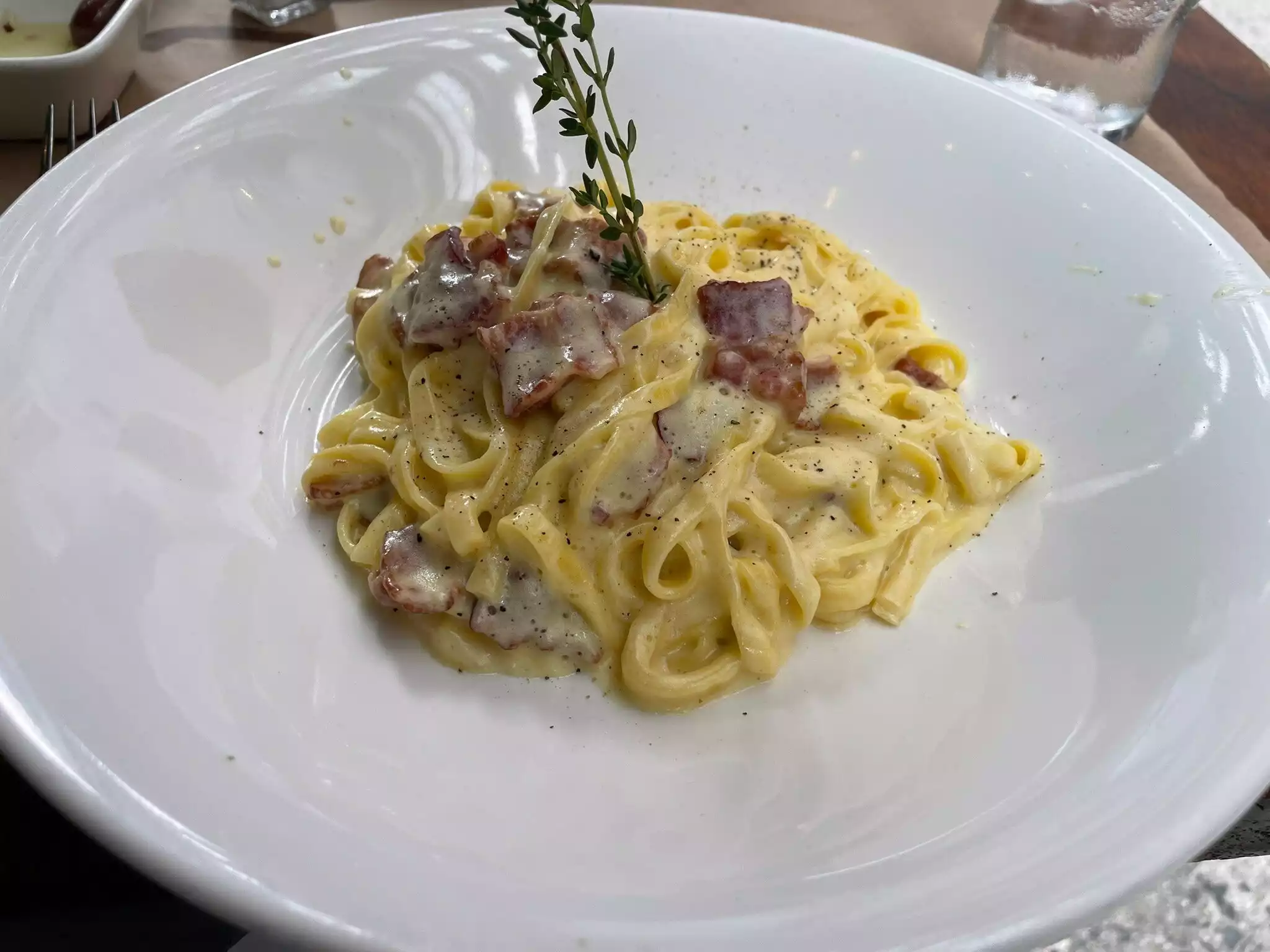 Lovely Italian restaurant with friendly welcoming staff and delicious food. Starters were veal meatballs (3 large meatballs!) and steamed mussels, both decent portions and flavoursome. Then I had a lovely authentic spaghetti carbonara while husband had seafood soup which had all sorts of fish in it including octopus! Again delicious flavours and we struggled but managed crème brûlée and mango sorbet desserts. A great experience, lovely food and amazing staff, we hope to go back before we leave