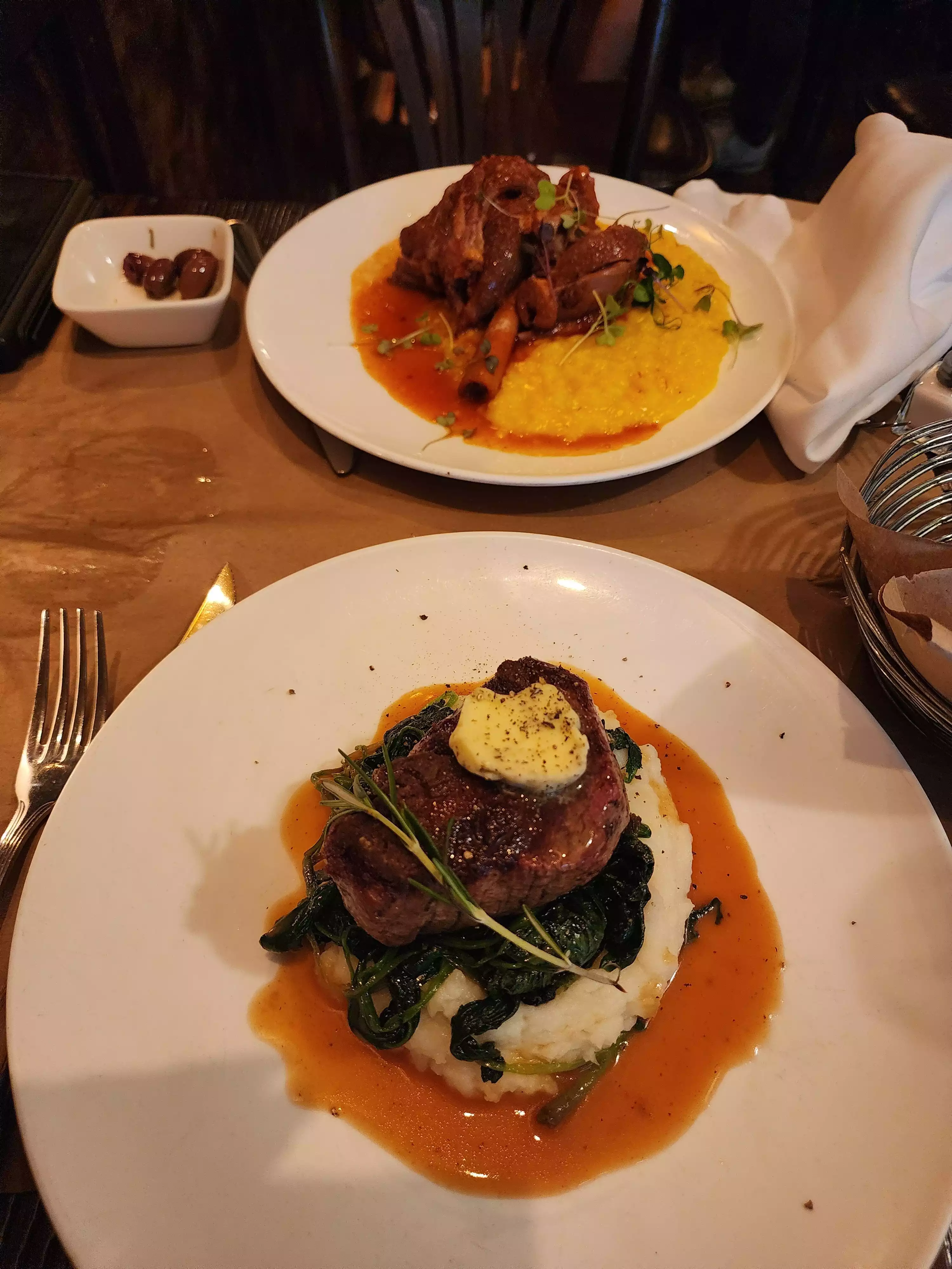 The food was out of this world. We got the mussels appetizer and shared the pesto seafood pasta and lamb shank. The lamb was so tender and it came with a delicious risotto. The pasta was great and I loved the flavor. Good service and overall a great experience.