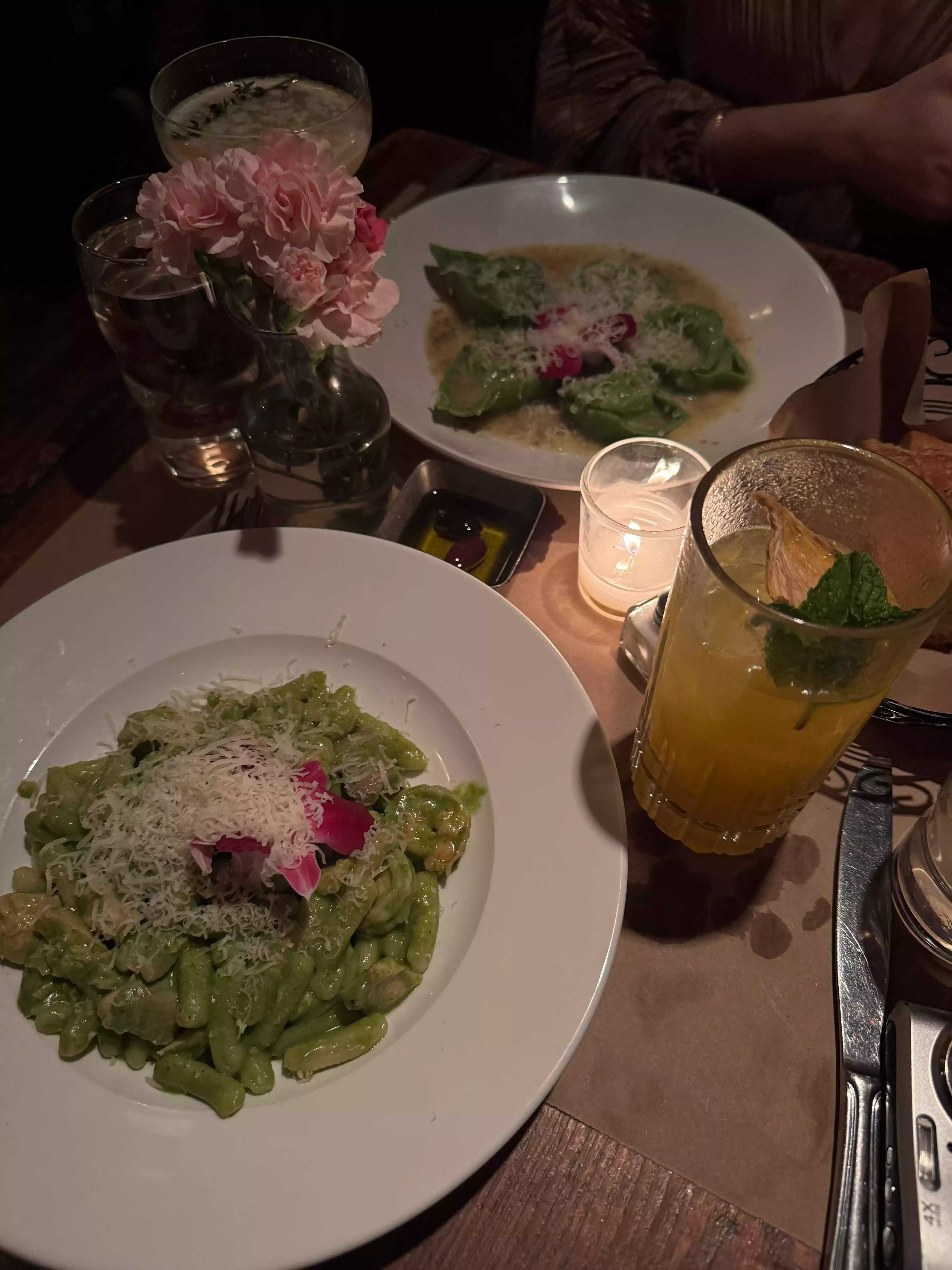 We came here for dinner and honestly the whole night felt so cozy and warm. The restaurant has that soft, candlelit vibe that instantly puts you in a good mood. Our table looked so pretty with the small flowers and the little candle burning in the middle, it just felt intimate in the best way. The food was actually amazing. The pasta was creamy and fresh, the chicken dishes were plated beautifully, and even the sides tasted like someone actually cared making them. Everything came out hot and well-seasoned. The drinks were also really good. super refreshing without being too sweet. I also want to mention our server, Isaac, because he genuinely made the experience better. He was patient, checked on us without hovering, and just felt really kind overall. You can tell when someone takes pride in their job, and he definitely did. Overall, the whole atmosphere + good food + great service made it such a nice night. I’d definitely come back.