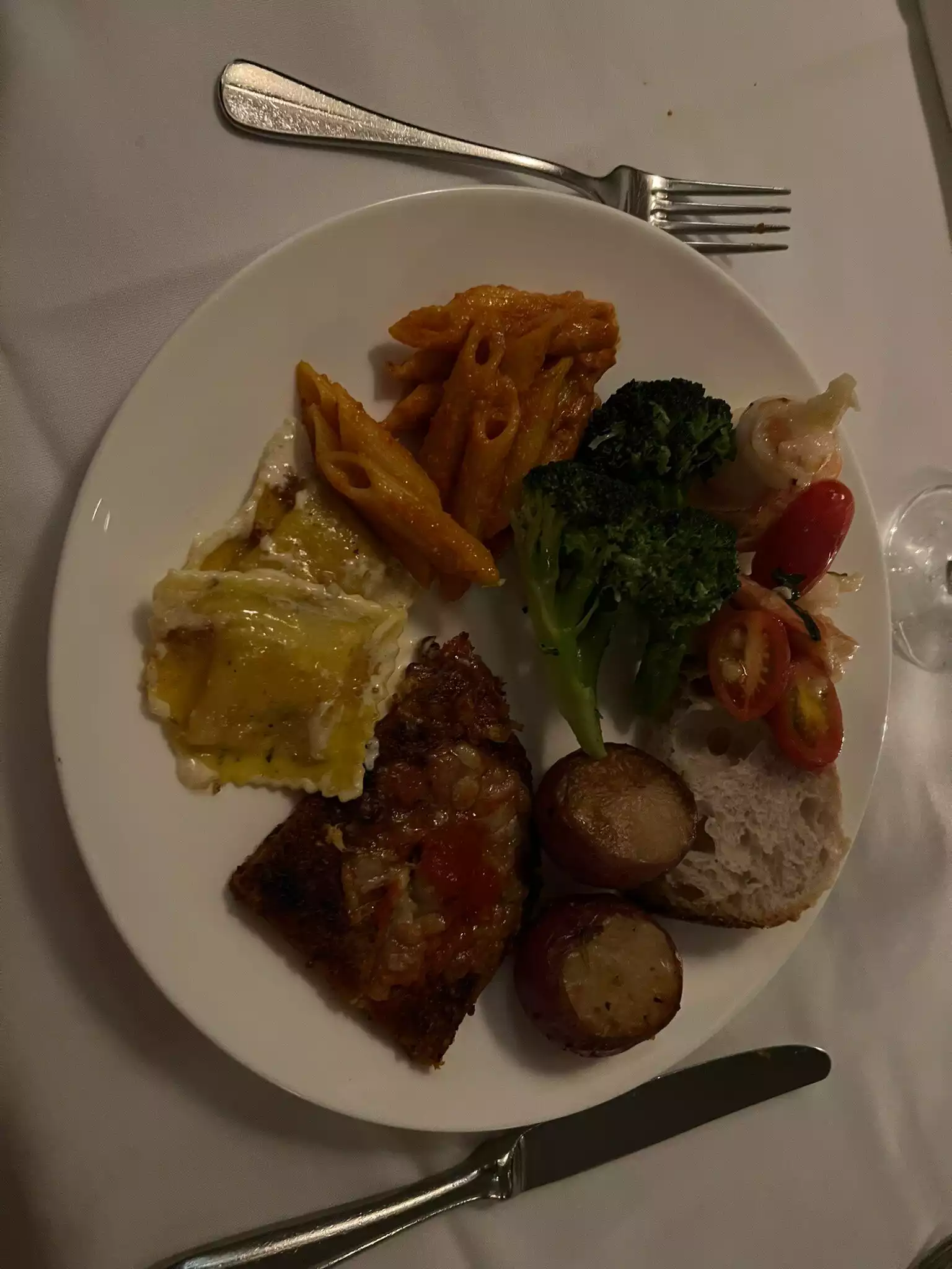 Service was very attentive & knowledgeable. My friend & I were very surprised that pasta didn’t come with our orders of chicken parm & eggplant parm…so beware of that.
