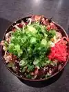 Sometimes I need a place to eat in Los Angeles that's open later than 9:30 p.m. Little Tokyo has a few restaurants, but Daikokuya was by far the most crowded. There was a 20 minute wait when my family and I arrived at 9:50 p.m. and the place continued to fill the entire hour I was there. There are only 6 booths and a sushi bar. Though the menu seems extensive at first glance, there are really only 2 basic items to order along with a handful of appetizers. Most everyone was eating the enormous ramen bowl: a huge portion of hot and tasty broth, egg noodles, meats, and scallions. There's plenty to take home for lunch the next day. My son ordered this along with a small chicken rice bowl as a combination. My husband and I ordered the rice bowl entree. This is a very big portion of good sushi rice, a bit dry, but tasty, topped with some strands of seaweed and sesame seeds, then a generous amount of protein (I had sushi grade tuna, hubs had chicken and egg). Both styles of entrees come with a small salad of finely shredded cabbage and carrot in house dressing (ask for the dressing on the side). The rice bowls also come with miso soup. I ordered extra green onion for my rice bowl and added them to the salad, too. The spicy tuna roll sushi appetizer was excellent. Be aware, this is one of the few places in L.A. that is CASH ONLY. Plan accordingly, since there are no ATMs in close proximity.