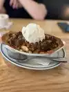 Lunch at the "Daily Grill" in Los Angeles was a delightful dining experience, showcasing exceptional food, attentive service, and a warm, inviting atmosphere. To begin, the meal was accompanied by a pair of mimosas, a refreshing start to the meal. The New England clam chowder was a standout, impressively rich and flavorful—arguably surpassing some of the offerings from the dish's namesake region. The creamy texture and generous portion of clams made it a memorable first course. One of the restaurant’s signature dishes, the pot pie, lived up to its reputation. The flaky crust and savory filling were perfectly balanced, offering a comforting and satisfying experience. The fish and chips, another classic, were equally well-executed. The fish was crispy on the outside yet tender on the inside, and the hand-carved French fries added a rustic touch, cooked to perfection. For dessert, the meal concluded with a giant apple cobbler, served hot and paired with vanilla ice cream. The cobbler was indulgent without being overly sweet, and the contrast of the warm apples with the cold ice cream created a harmonious finish to the meal. The service throughout was professional and attentive, contributing to a well-rounded and enjoyable dining experience.