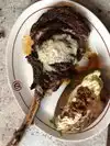 My husband and I dined here during the week. The environment was nice and the server was friendly which were the primary redeeming qualities of this restaurant. As a starter I ordered the Caesar salad with anchovies which was tasty. My husband ordered the clam chowder, it was watery but still had good flavor. The main course a 16oz ribeye was disrespected on the grill. We ordered it medium rare, it came out medium but the grill or pan was too hot burning the exterior and leaving a lot to be desired. So much so that I opted not to eat my portion and gave it to my husband. The garlic mashed potatoes lacked garlic or any other seasonings that would redeem it. For the prices that we paid, the main course at best was tantamount to IHOP on a good day, though my husband disagrees and says he’s had better food at IHOP. We would have said something to the server but after the main course service he didn’t really return to the table to check on us, just see if we wanted dessert and give us our check.