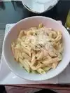 Huge portions. I was in the mood for carbonara And they made it for me even though it wasn’t on the menu. Very good. Risotto was chicken with veggies in saffron. Excellent! Great service. We got in here just before it got crowded. Every table was filled within twenty minutes of arriving. We got here just before noon.
