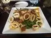 Calamari rubbery served with a sauce that looked like orange purée Dinner Shrimp Fra Diablo recommended by waiter/ same awful sauce that was served with calamari with a few cherry tomato’s No spice no hint of freshness