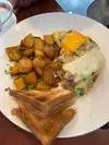 Amazing breakfast! Just eat here! You won’t regret it! Delicious, fresh food. You can watch the chef prepare the food! Everything looked excellent!