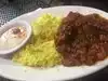 We ordered the rice plate with chicken as takeout. It was delicious! The chicken was tender, and the rice was well spiced. The portion was very generous - enough to feed two adults satisfactorily.
