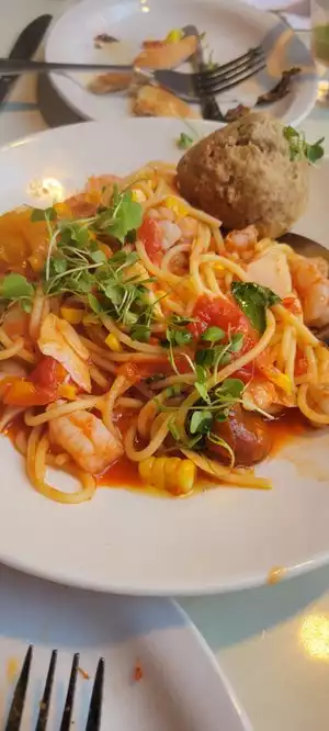 Everything we had was good, not amazing. When you pay $16 for spaghetti and it looks like a child portion, it’s kind of annoying. The focaccia was very good. The pizza was ok. Service was top notch.