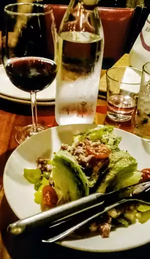 This restaurant is in the Little Italy section of San Diego. There are lots of restaurants in this area. This restaurant has a location in Illinois that some friends said was great, so we decided to try this. We got there at 2:04 and the lunch specials only go from 11 to 2. The server didn't offer us the option of still getting that. We got a burger (crazy at an italian restaurant I know, but we heard it was really good) that comes with something called bacon jam on it whch was very tasty, and some grilled onions and a tomato slice. The fries were great. My husband got a Caesar salad with white anchovies, croutons, and shaved Parmesan cheese. It was whole sections of Romaine lettuce, so it was kind of a make it yourself salad. There was only one other table of diners when we got there, and then a table of 6 came in while we were there, so I don't know what happened to our server. We were there for more than an hour to have a hamburger.