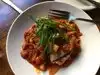 Popular and trendy But……..it was hot inside (no ac?) and this is during a heat wave. Also very noisy! We were seated promptly and the server took our drink order, and they were brought to our table quickly. Then we placed our order for TWO spaghetti bolognese. Only one order was brought to our table! Our server finally came to our table after my husband finished his entree - never appeared earlier. She didn't apologize so we paid - for what we did get - and left. Very disappointing!