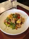 Visited with a friend for a weekday lunch, and the place was quiet at noon when we walked in, but got steadily busier. Quite a decent selection if choices for started, main, and desert, and options for you to get 1, 2, or all 3 courses, which I always like. The lobster dumplings were good, although still slightly undercooked around where the dumpling was sealed to the lobster leg. The salmon main I has was cooked absolutely perfectly, especially for a thick piece of meat — it was very slightly seasoned and crispy on the ends, and a perfect warm butter on the inside. The presentation was top-notch, and overall, I thought it was good value for the money, as long as you are expecting an upscale quality meal, which it was.