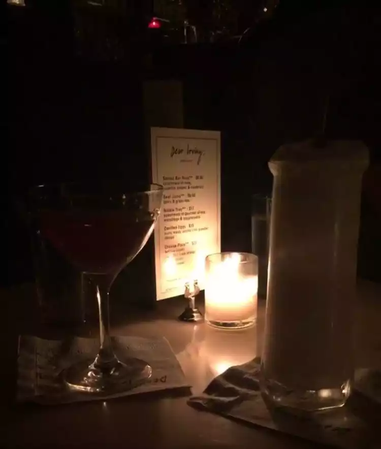 Such a fun place! Dear Irving is an elegant speakeasy. I went with my daughter and her friend for a drink after a Broadway matinee. We were seated in a back room with elegant, vintage decor. Sofas and tables. Great to relax and talk. The drinks are pricey, but definitely top shelf.
