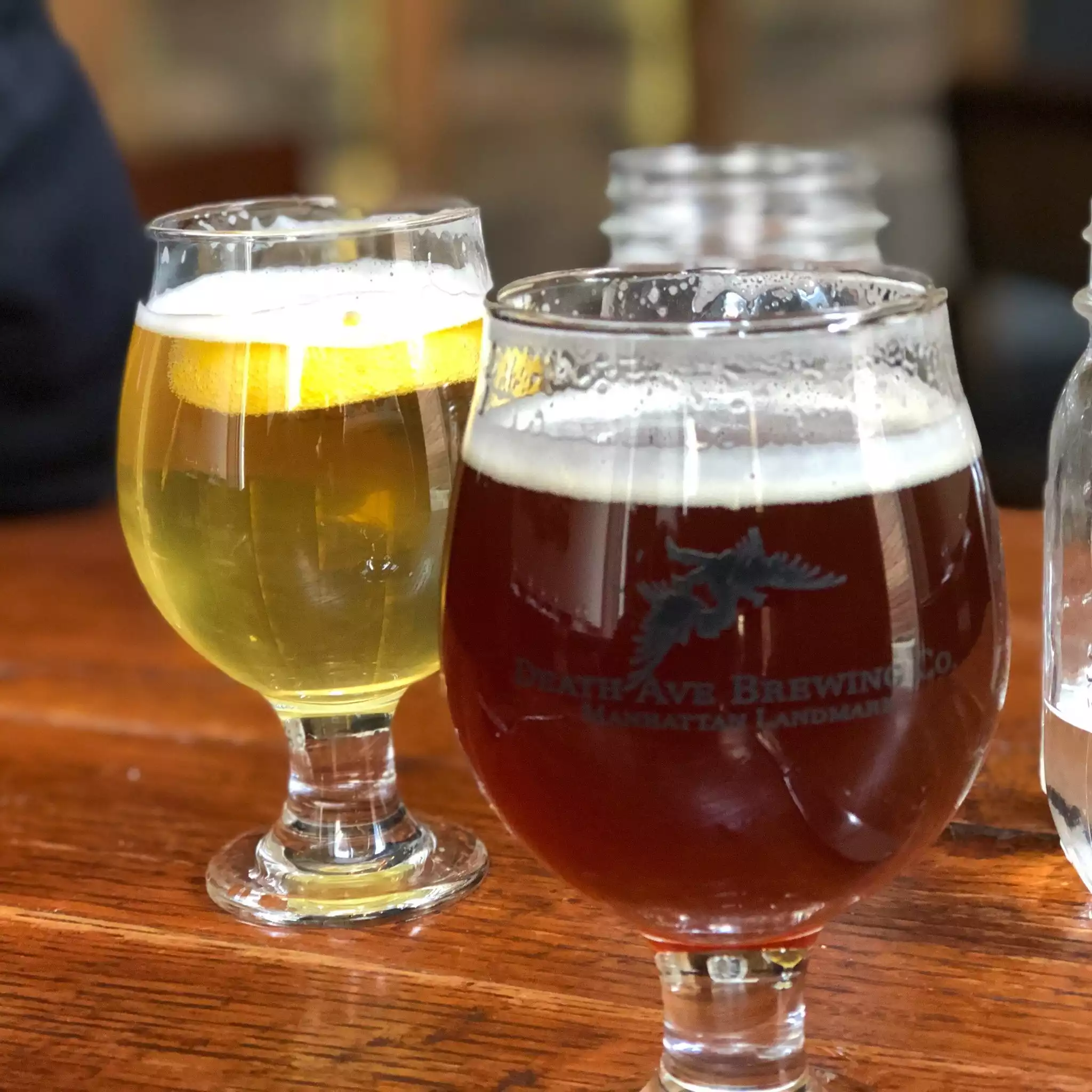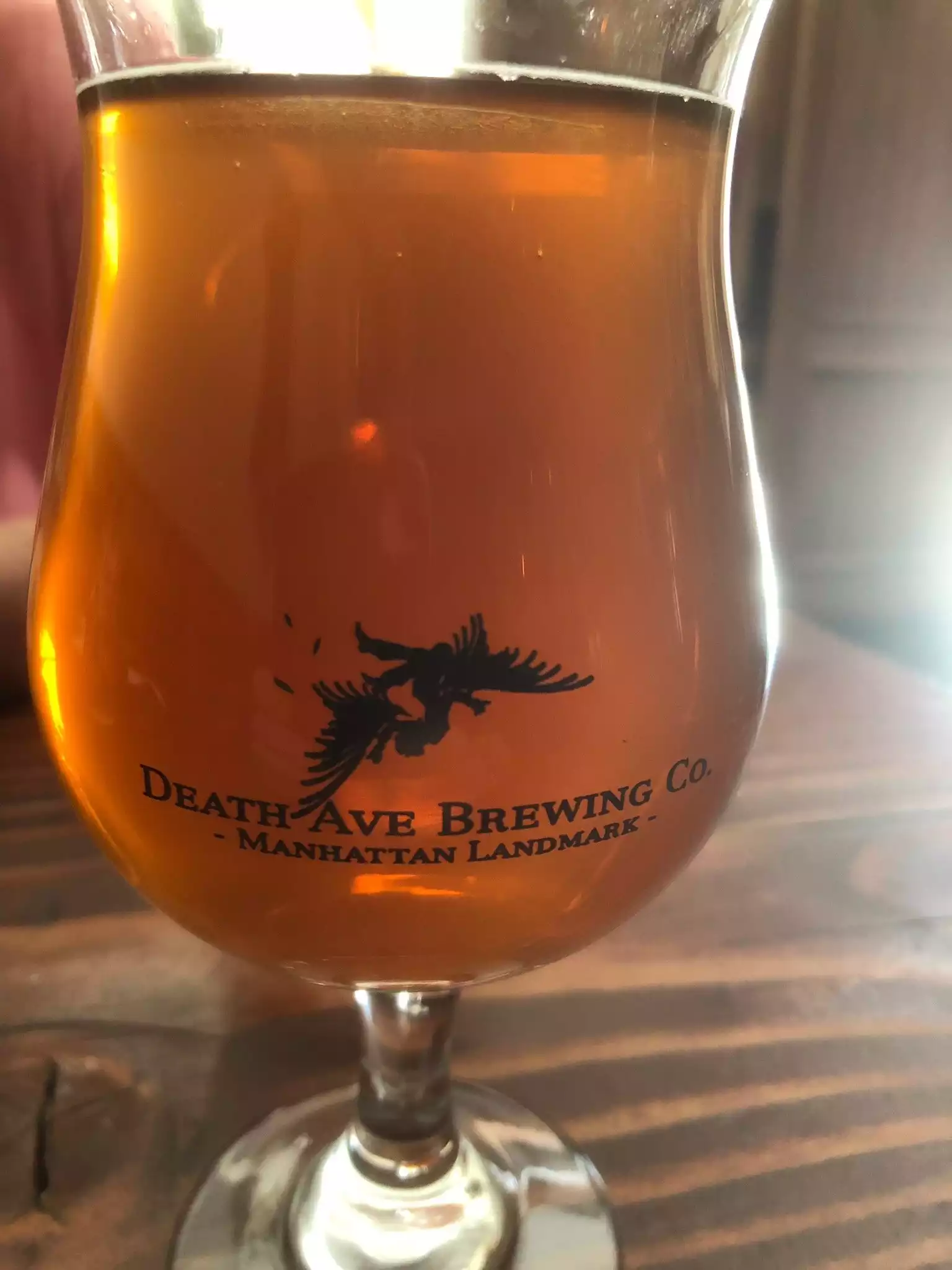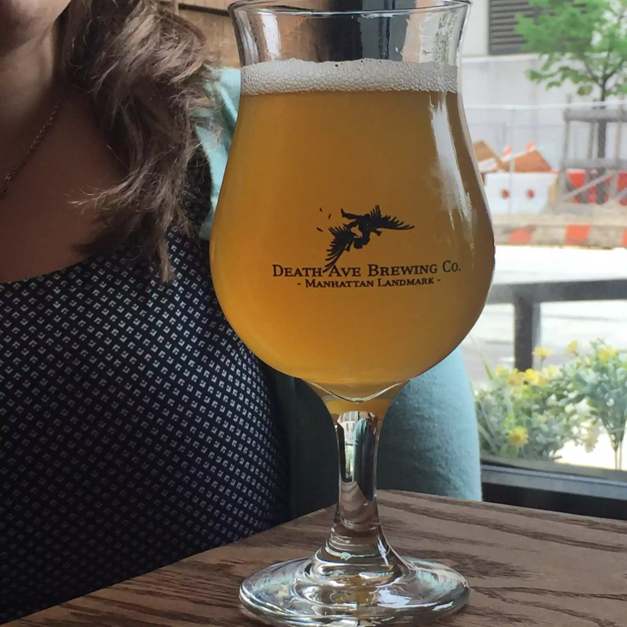 Death Ave is an absolute must if you are visiting New York. I’m a big craft beer fan and I brew all grain myself. I’d stopped by with a friend to try the cask ales they brew on site. The place itself is very impressive, a real rustic vibe with lots of reclaimed wood beams, subtle lighting and bare stone walls. The beers on draught come straight from bright tanks in the basement and the cask ales mounted behind on wall is a great touch. There is an outdoor bar and dining area with very comfortable chairs and lantern lights, which is fantastic in the evening. The staff were very well informed about the different beers they brew on site and were able to recommend the perfect beers for us to try. My friend isn’t a big beer drinker but she was served a great pale ale that she really enjoyed. I tried a 7% IPA and was very impressed. Strong and very hoppy, the way it should be. We enjoyed the drinks so much we decided to stay for dinner. The dinner menu has a strong Greek flavour to it. My lamb shank was cooked to perfection as was my friend’s Greek BBQ dish. For a brew pub, they have a decent wine list and a good range of cocktails. I stayed with beer through dinner but my friend tried a great Merlot. The service was excellent, the staff are very attentive and more than willing to answer my questions on their brewing process. I will definitely be back to try their brewery tour. Highly recommended.