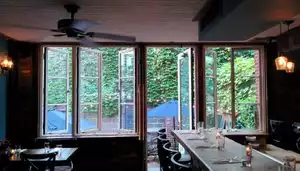 Food great, service very accommodating, décor interesting and welcoming. Nice garden at rear of restaurant, but on the day we were there too hot to sit outside. Instead, server found us a comfortable semi-private alcove in main room. Overall, a very nice experience.
