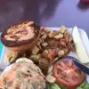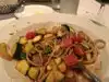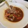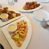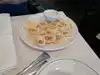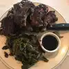 Everything we ate was yummy! My husband loves the ribs. They were accompanied by a huge amount of cooked spinach which he removed from the plate since he can’t stand the smell of it. I enjoyed his spinach though. Our waiter was working with a large group so there were a few times when we needed him but he was busy. He did eventually get to us. He was very kind and so was the rest of the staff. We ate inside since we were there for dinner and it was chilly outside but there are outside tables. The atmosphere was good and the dessert menu was huge. I had a large hot fudge sundae and my husband had the tiramisu-both were good. We definitely ate plenty of food that night!