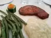 Lovely dinner, pork chop with mash potatoes and snap peas, excellent like home cooked food. Ruby had salad and potatoes Nankes, like flat hash browns.....nice.