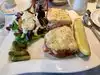 Great service and good value Ate here after a Giant’s game. Dinner was substantial and tasty. Daughter had a bowl of clam chowder, husband had blackened meatloaf with mashed potatoes, I had crab cakes and a small cheese platter. Clam chowder was good. Nothing fancy about it. Husband’s meatloaf had a Cajun crust on it and he thought it was tasty! And my crab cakes were full of crab with little filler. The small cheese platter was standard with soft and medium firmness of the cheeses served with crackers and grapes. We ordered beer and wine from the bar. Service was professional and friendly. We will go here again as it is the best fine dining experience and value in San Francisco!