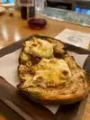 Good pizza. Not bad tasting steak. Waitress was very sweet lady and explained the menu. She put a candle in my dessert for my birthday it was so sweet of her!Has communal tables, meaning you're at a table with other patrons. Not too fond of. It wasn't bad but it did say it online and I paid no attention to it.