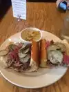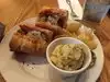 Indoor & outdoor seating in this large establishment. Interesting menu names for dishes. The Chief Stealth Bomber with Dipping jus was unusual. Tender roast beef ( sadly not rare), sauteed onions,provolone, horseradish aioli( needed more !) on a toasted Italian roll. Tasted good...cold have been even better. Home made lemonade waas good.