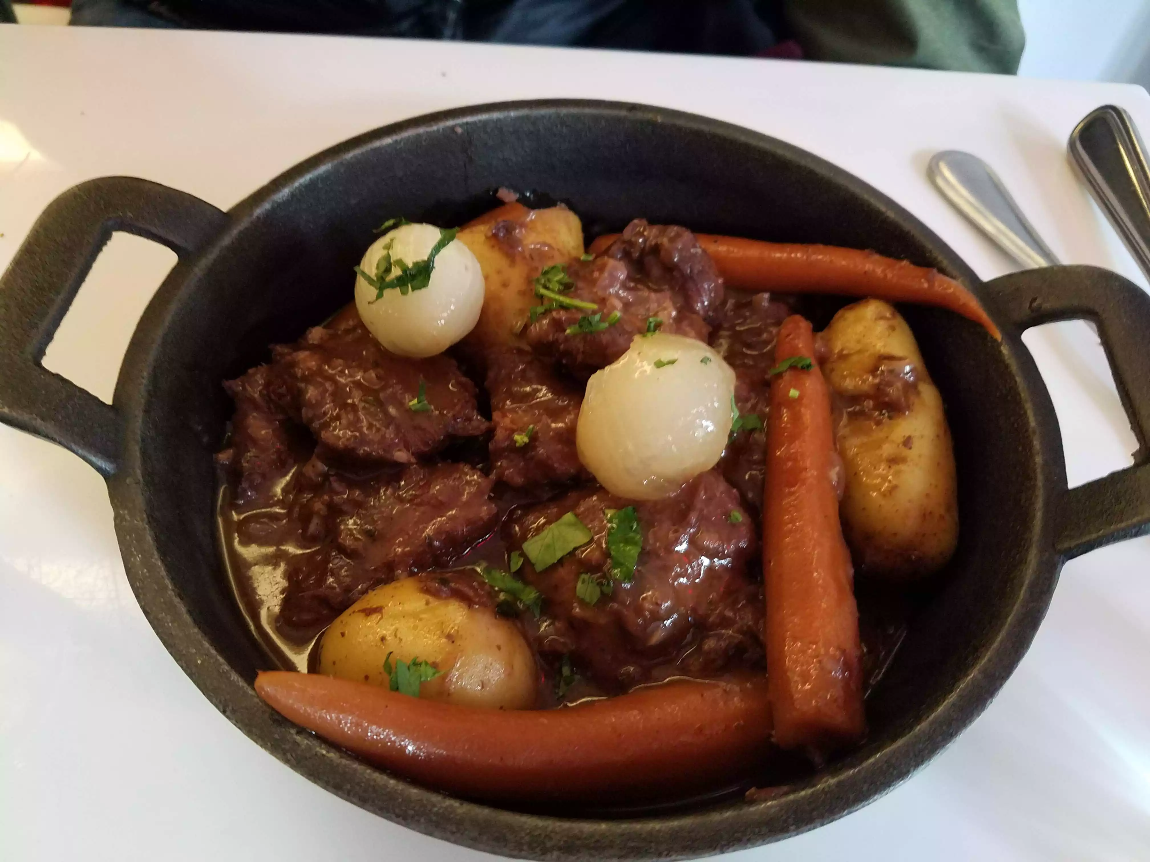 My wife and I were here for dinner over MLK weekend and we really loved this restaurant. My wife is a Vegan and I am a Vegetarian so it is difficult to find restaurants that can accommodate us. My wife had the Coq au Vin and I had the Steak Frites. They were both amazing and I can't recommend this restaurant enough.