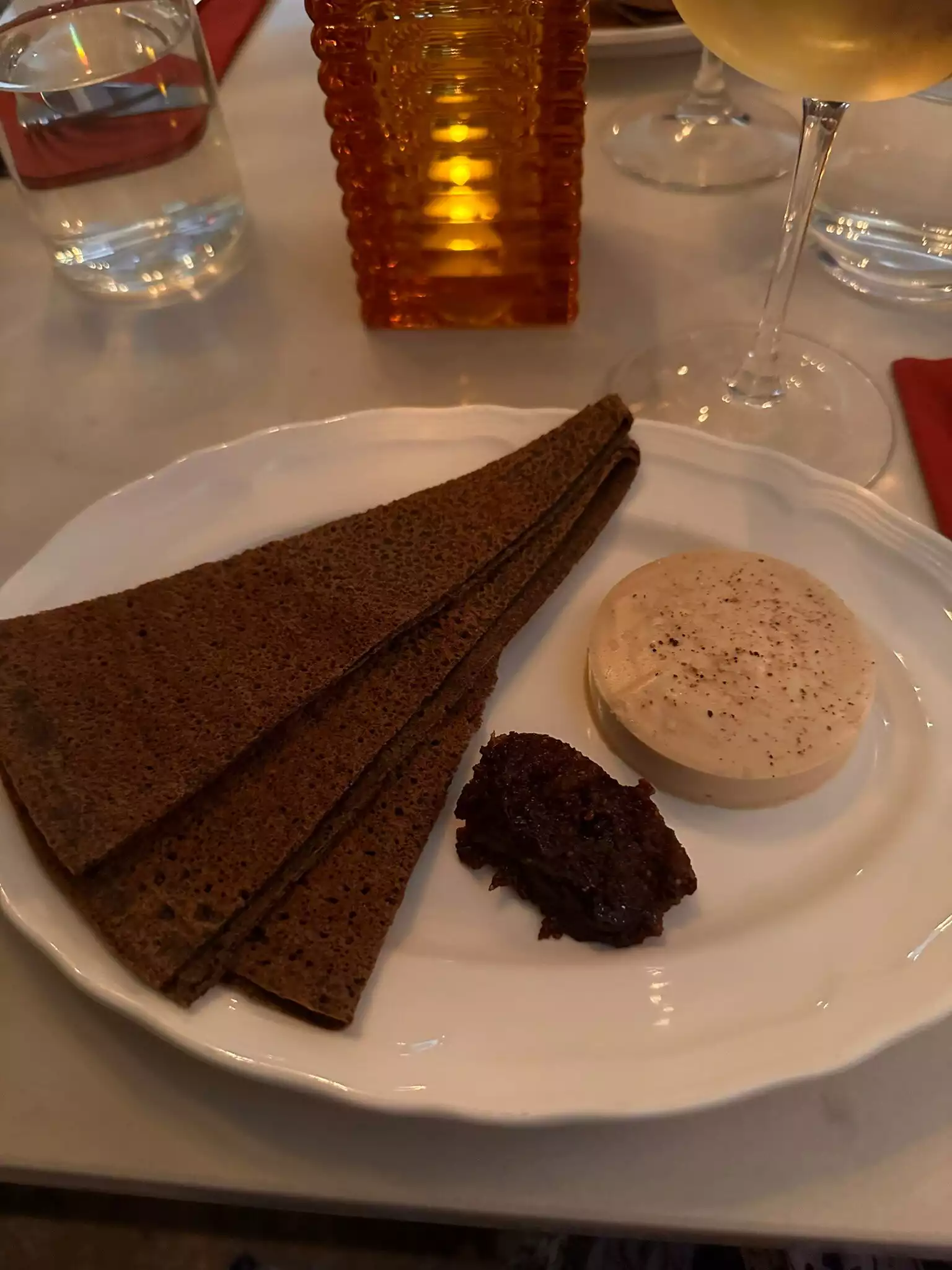 My vegan daughter and I found this awesome restaurant and were over-the-moon happy with every aspect of our experience. The food was a celebration, and I -as a non-vegan- found it completely satisfying, and not lacking in any way. For appetizers, I had escargot, my daughter had the roasted Brie. Fantastic! For our main course we kept it classic and ordered Bœuf Bourgignon, and Coq Au Vin. Again, fantastic. For dessert we ordered Lattes and Crêpes Francinette. Again, fantastic. I ordered a Sauvignon Blanc with my main course. We both also had a bottle of bubble water. The restaurant is beautiful and quiet enough to actually enjoy your companion in conversation. The waitstaff was attentive and professional. The vibe was not pretentious, which I appreciated. I was traveling in a nice pair of blue jeans, but did not feel out of place. I felt the restaurant was really just wanting you to come and enjoy the great food, and dine in the best tradition of that word. Price-wise, this was a splurge for us. But worth every penny. I highly recommend Delice and Sarrasin to anyone who enjoys good food and lovely atmosphere.