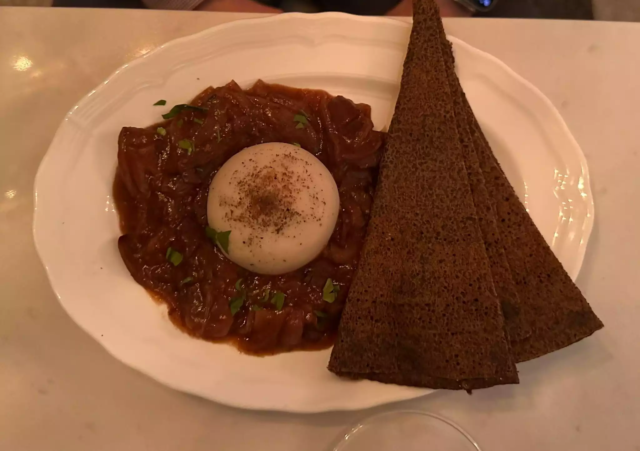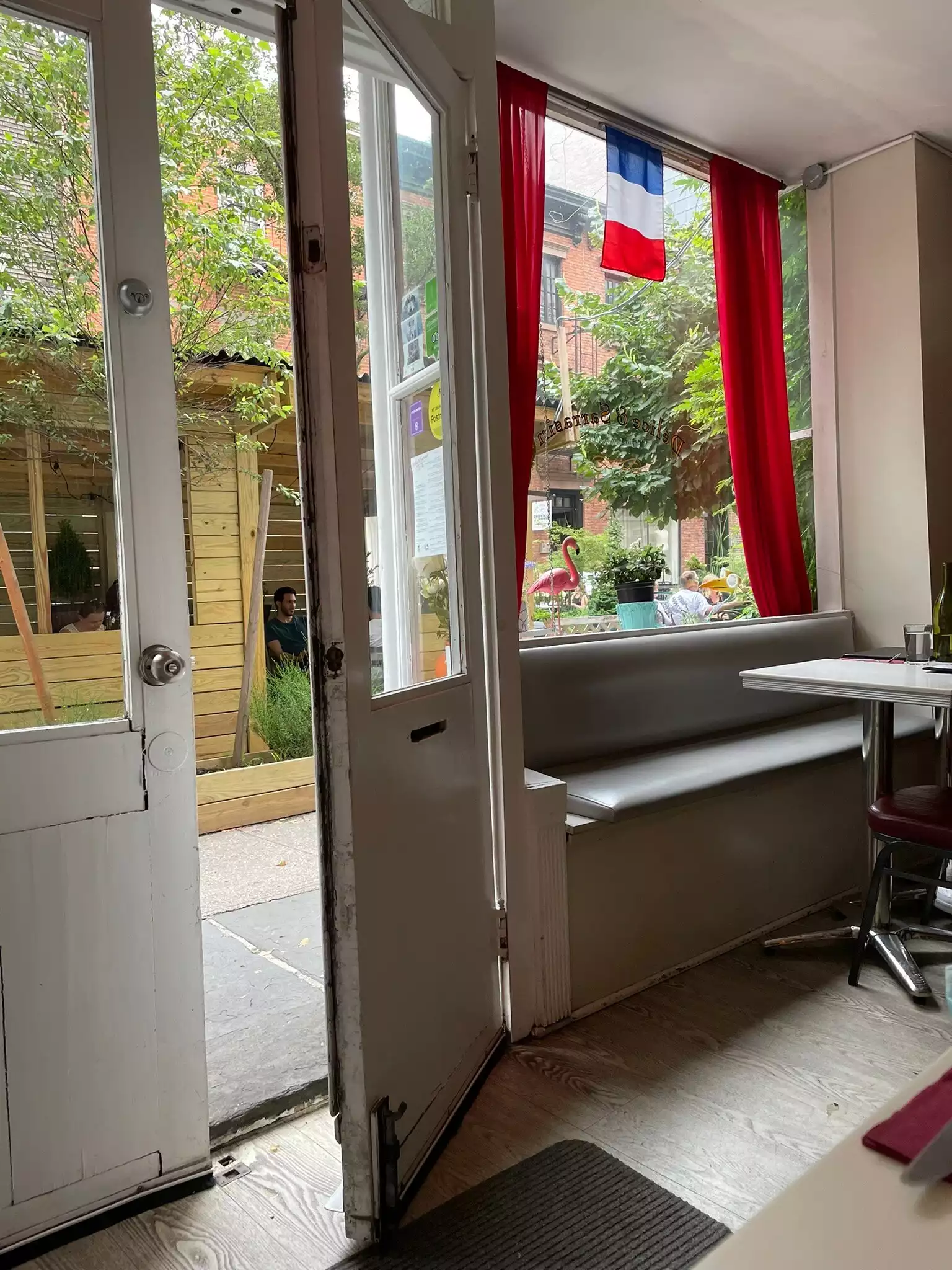 The restaurant is very cozy , warm and the food is amazing I had boeuf bourguignon that fooled me , a cheese platter with Brie fondant that tasted like real Brie. I could believe the flavors and the taste of the dishes Desert was chocolate mousse , probably one of the best one I ever had . My friend had vegan crème brûlée that was delicious I highly recommend this little gem in the west village. People were waiting outside on line for a table