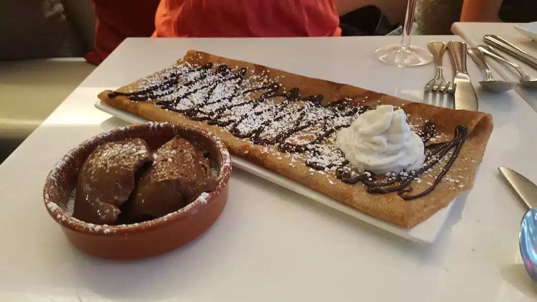 We visited the restaurant for dinner. We enjoyed savory galettes for dinner. The buckwheat used for the galette is imported from Italy. We also enjoyed a crepe gourmandes to finish our meal. This is a wonderful small restuarant. The service was excellent.