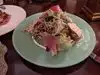 Everything was great. Food was exceptional. Endive caesar salad incredible. Pork chop fantastic. Bread outstanding. Service amazing. The first negative was that we received a message outlining the dress code which our entire party of 8 adhered to only to find that people were there in graphic tshirts, baseball hats, ripped jeans. Seems there are different rules for various groups which should not be the case. Second negative is regarding the live entertainment. There was a singer that no one could hear! Would have been nice to be able to hear what was being sung and played. There are these ‘dancers’…no one in our party could understand why…..they didn’t do any type of dancing worth watching….just seemed like writhing.