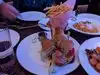 Service was good, not the best we had this trip in my opinion. Nice vibe but the food was just on for the process. Chicken strips were fine but reminiscent of Raising Cane's. Music was loud, so had to tell across the table. BTW, the person behind my husband couldn't get out as they put tables so close together. I wouldn't rush to go back, but it was packed in there so somebody likes it there.