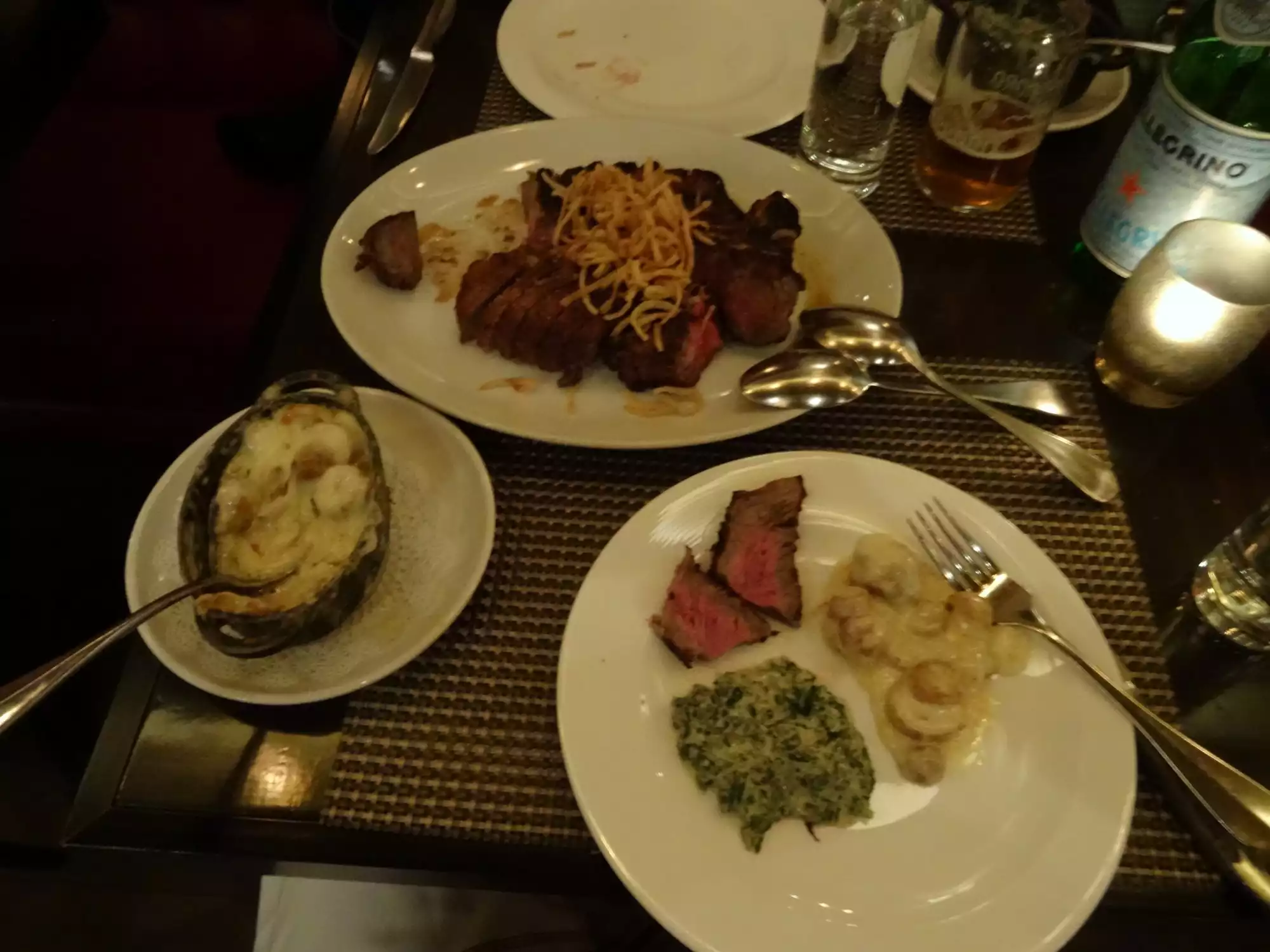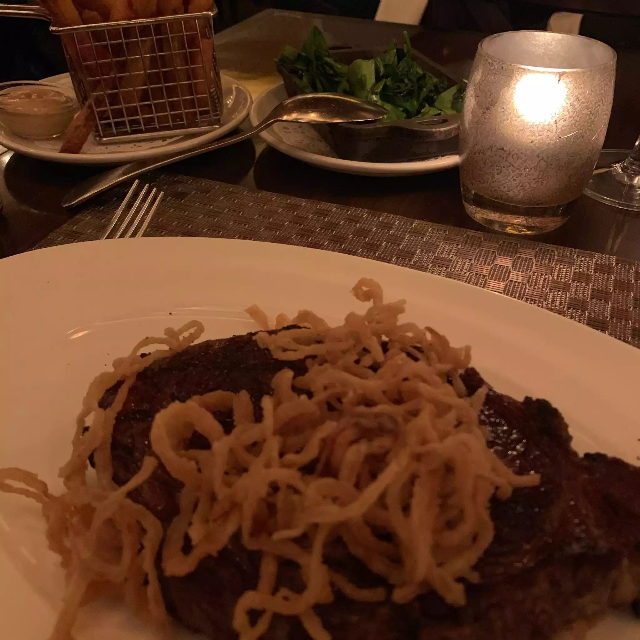 My adult son and I visited the city in early March for our first time there. This gem of a restaurant was our first night's dinner. It was a weekday and a bit late, but there were seats available. The staff was attentive and knowledgeable without being intrusive. There is a good drink and cocktails menu to start the meal. A red wine was my choice and my son enjoyed a whisky drink. We each had a steak (filet and a strip, I think.) and ordered two sides to share, mushrooms and the potatoes. Everything was amazing. It's an upscale environment, so go looking at least business casual. Prices are high even compared to just the NYC restaurants we found on our 5 day stay. This one was hands down the most expensive. As long as you are prepared for that, go. It was a great meal.