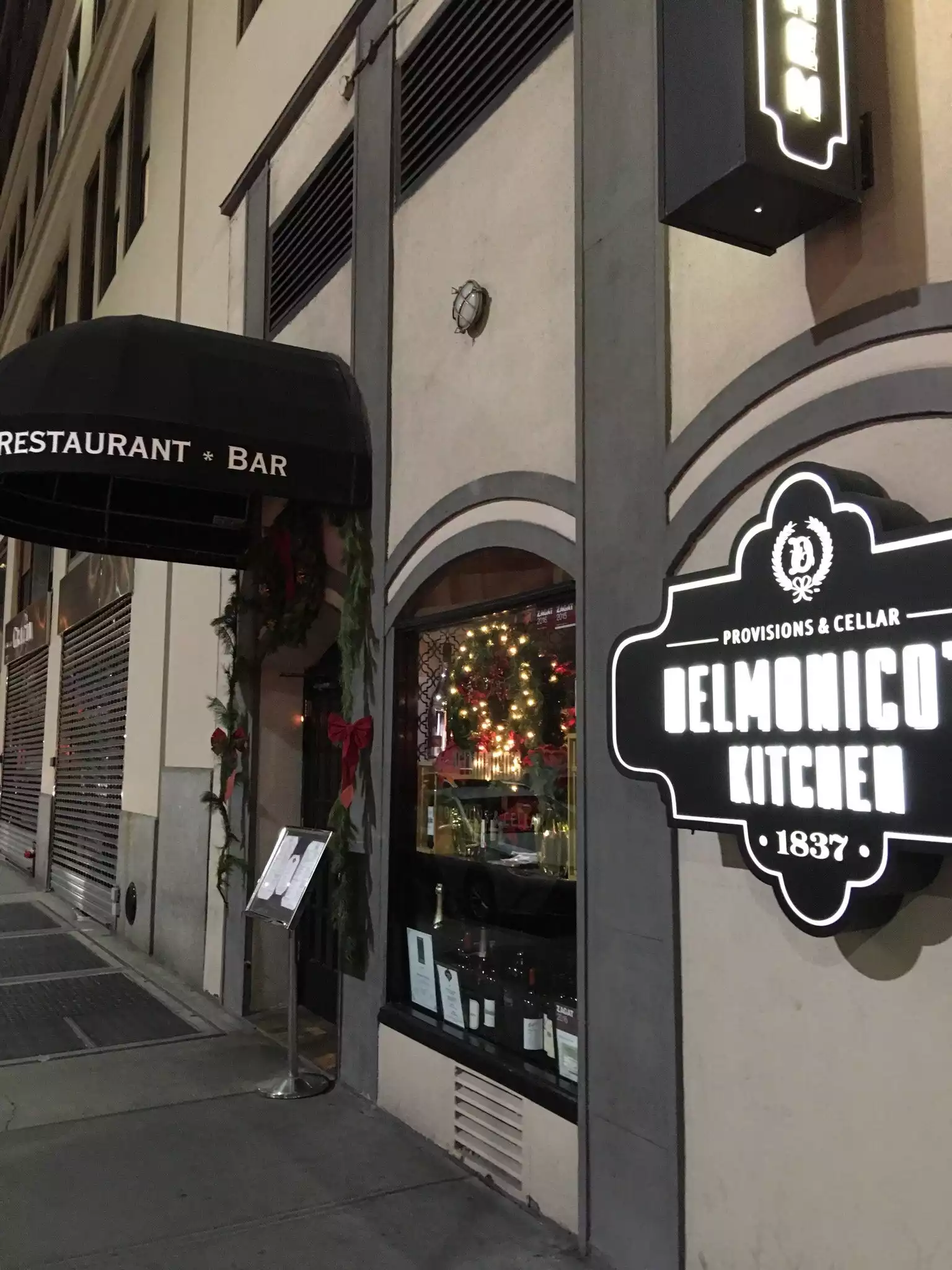 We were invited to my nephew's wedding rehearsal dinner at Delmonico's Kitchen, and it was an outstanding meal. Our group was ushered upstairs to a private dining room, where a bar was set up for the evening, despite the fact that a cocktail hour had already been held at Junipers, one block away. We started with a Cesar salad, which was outstanding and had the option (yes, please!) of anchovies, which made it extra special. We both followed with a fillet mignon, which was not only one of the largest, but best cooked offerings of this dish that we have ever tasted. Dessert was New York City Cheesecake, which was so good that I had to eat one that was left behind by another relative who left early. His loss. Despite the large group, the wait staff was attentive and accommodating. This was an outstanding meal, and I would definitely recommend it to others visiting NYC who want a "New York Steakhouse" experience, and we would return without question (at our own expense, next time, unfortunately) on another visit to The Big Apple.