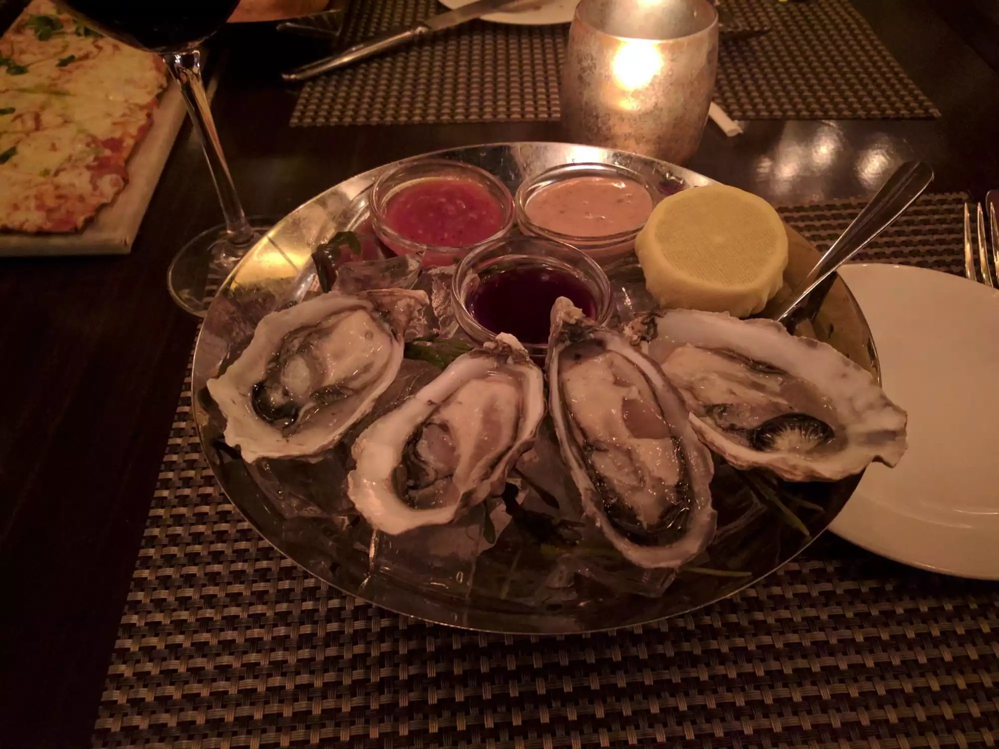 We had a very nice dinner with lots and lots of food. The only thing that I wouldn't order again was the roasted cauliflower. We both had beet salads and a 20 ounce delmonico steak (which was very tasty) and the cold seafood platter which was also very tasty. The waiter forgot to bring us bread but in retrospect thank goodness for that