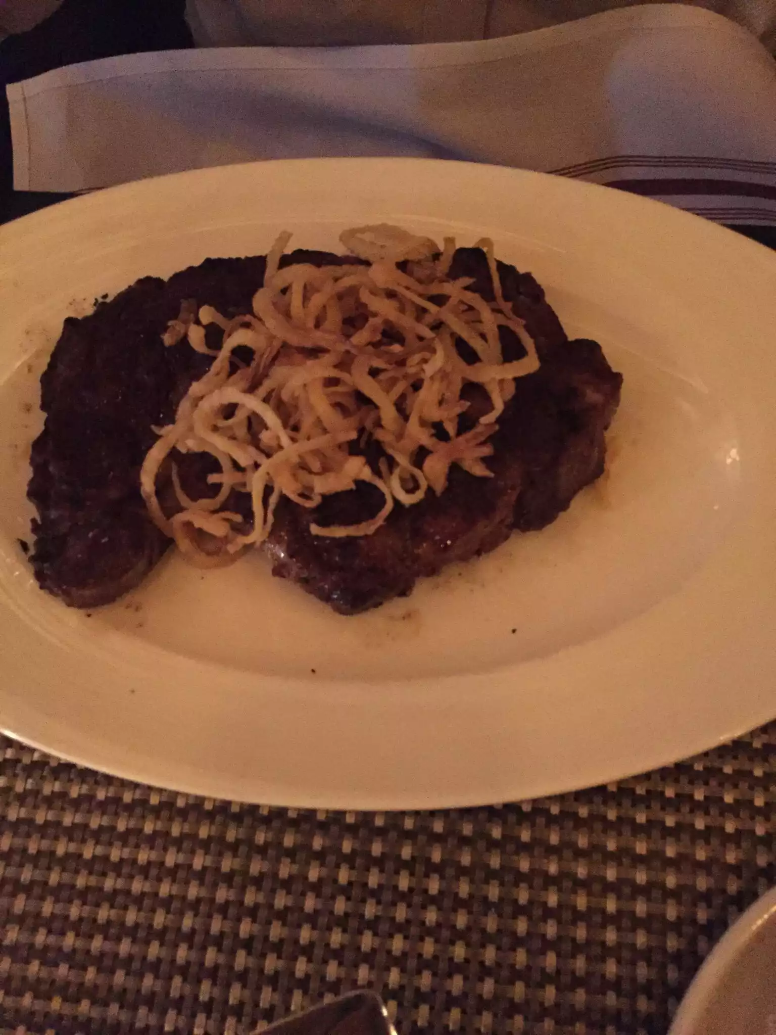 DH and I ate here during a weekend trip to NY. We both had steak, and it was amazing. Incredibly tasty and cooked to perfection. I had the steak frites, and it is useful to know it comes with a 10 oz ribeye, whereas the menu ribeye is 20 oz! DH had the NY strip and a baked potato. I had crab cake to start, which was good, but not amazing. He had the iceberg wedge, which was a whole iceberg head quartered into wedges. No room for dessert. Service was perfect. Genuinely nice but not intrusive. It was expensive, but well worth it. We can't make steaks like those at home. Fine dining but you can wear jeans. It's that kind of place.
