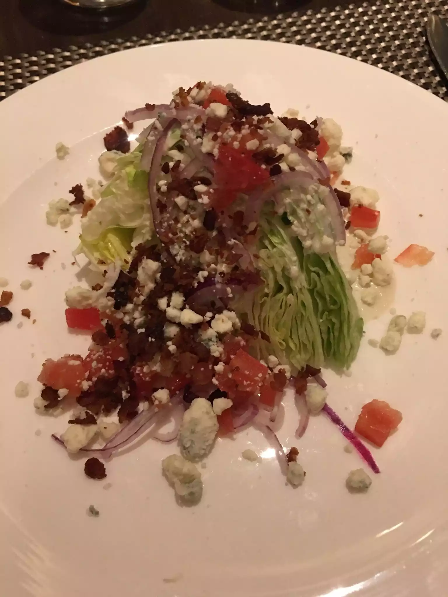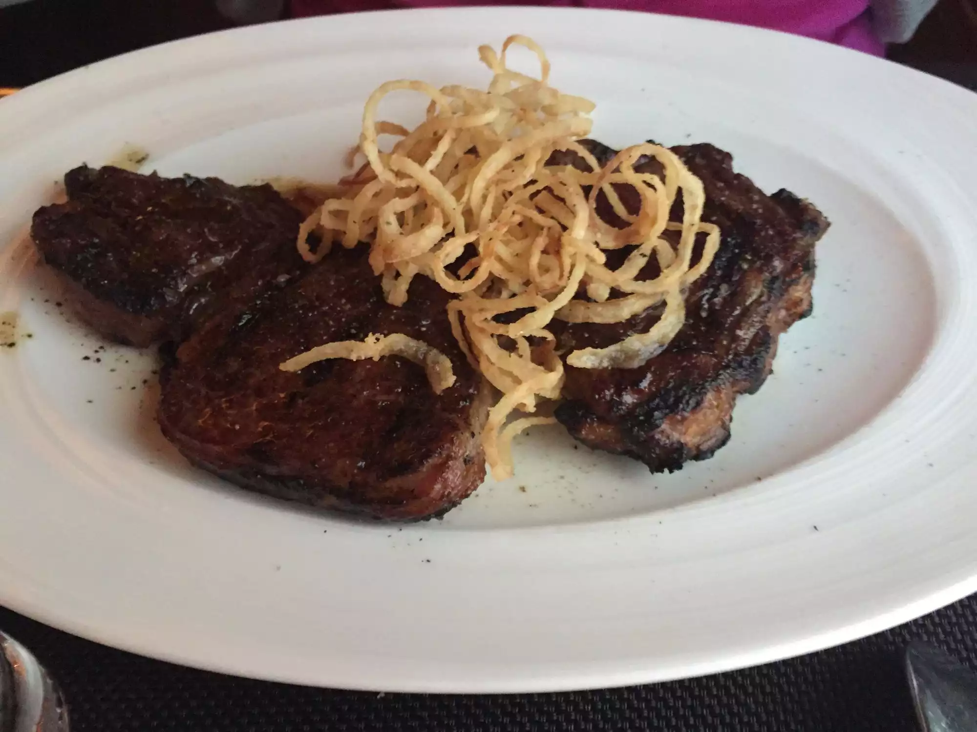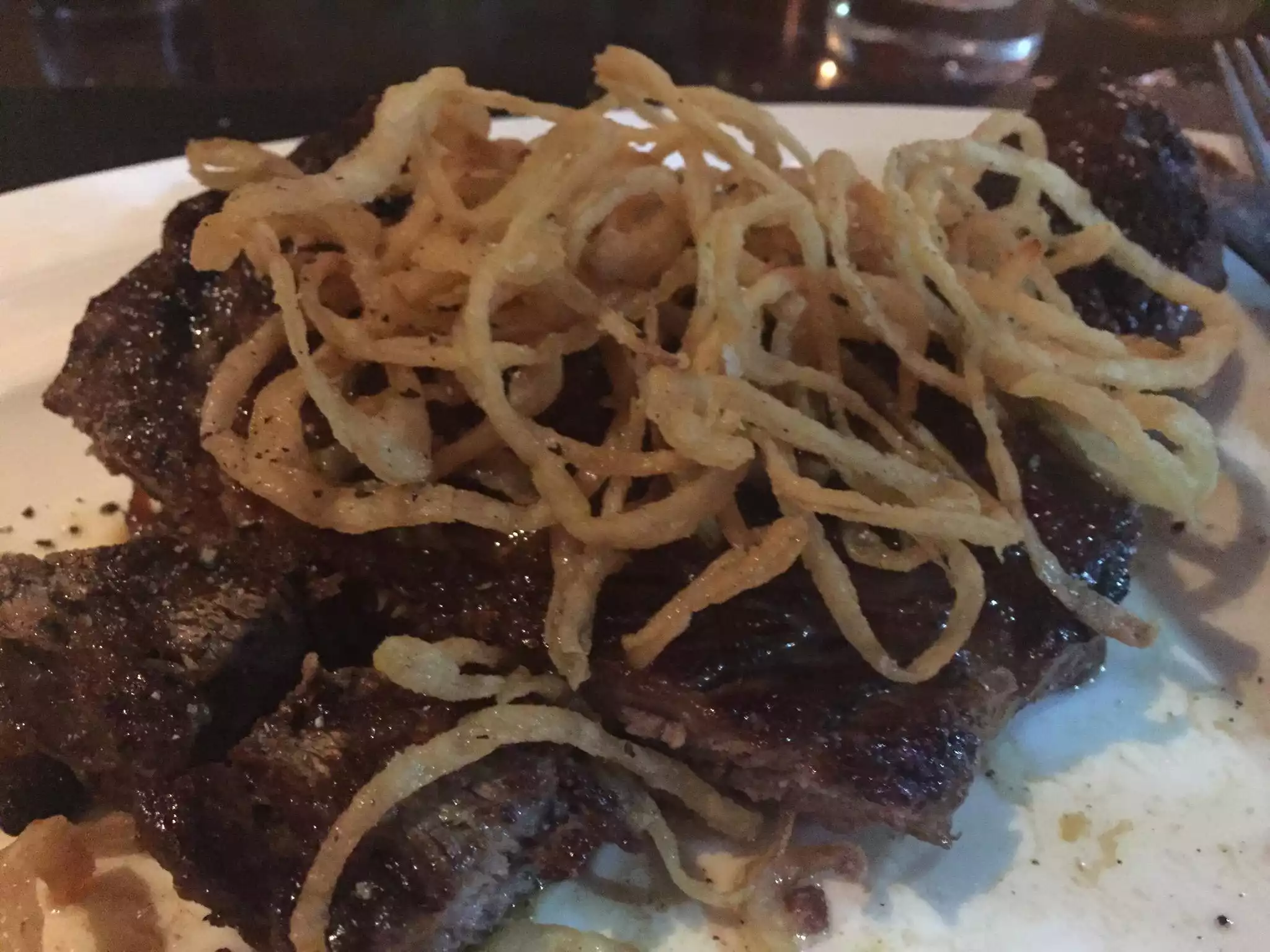 The steak was excellent and order the appetizer or small plate of onion rings with blue cheese dressing.
