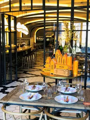Well, I am not sure where to start. This place is not for couples, brunches, business meetings, dinner or anything like that. Its primary service and food options accommodates families and large groups with kids. The food is buffet style but they serve you the fresh buffet food as and when its available, so there is not really a menu per say. I dunno, I cant quite put my finger on it but this restaurant was not a good fit for me and my husband. We sat at the bar because there was some kind of mix up with the reservations. The seating arrangement in the long walkway, which is were they wanted to put us is a terrible concept. The food was ok and some pizza slices had unusual ingredients on them and the other small plates were alright. It just did not please us, but I can see families and children having an awesome time. I am a fair reviewer and just boiled this down to the fact that this is not a restaurant I would recommend unless you are feeding tons of children with their all you can eat offering.