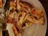 Not your usual pizza place. You don’t order. Sit down. You get three appetizers. Then the pizza starts coming. Waiters wander the room with a variety of pies and will give you as many slices as you want. They’re deliberately small so you can sample lots. Examples. Cheese, pepperoni, Bbq, spinach, steak etc. all good. Then The deserts come out. Basically your choice is a drink. Everything else is like a pizza buffet that comes to you. It’s loud in there but quaint and fun