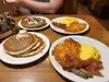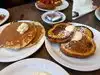 Came with my dad. It was short staffed and therefore took a long time to seat us, even though it was not busy. Took 45 mins for food to come (blueberry pancakes) and it was missing the hash browns. One appeared (second didn’t) after eating the eggs and bacon. The food was cold and the pancakes were also missing for my dad and arrived after another 10mins. Totally disappointing.