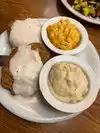 Located on the Las Vegas Strip at the Showcase Mall. My wife and I dined here for dinner. We each had an Iced Tea. We both ordered the 55+ Meal Deals. She ordered the Salmon with two sides and I ordered the Country Fried Steak. We both got a Country Fried Steak. The waitress said my wife ordered the Country Fried Steak, and doubled down on it. I heard what she ordered. Salmon. My wife does not eat anything with a cream sauce. That got corrected after a few minutes for them to cook the salmon. The sides were very good, nice dinner salad with great tasting dressing and rice pilaf. Our waitress was good overall, but do not double down on something you were wrong about. Photos added.