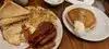 Nice place to visit for breakfast I had the French toast with cream and strawberry’s which came with sausage, eggs, & bacon with a coffee pot Well recommended if you want something nice and not over expensive