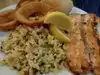 The food wasLOUSY did not even worth $5 I couldn’t even buy a bottle of water to eat my dried grill salmon however the server was very pleasant