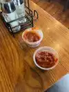 Service was terrible totally understand that they are busy but server still needs to make sure tables have condiments and creamers for coffee
