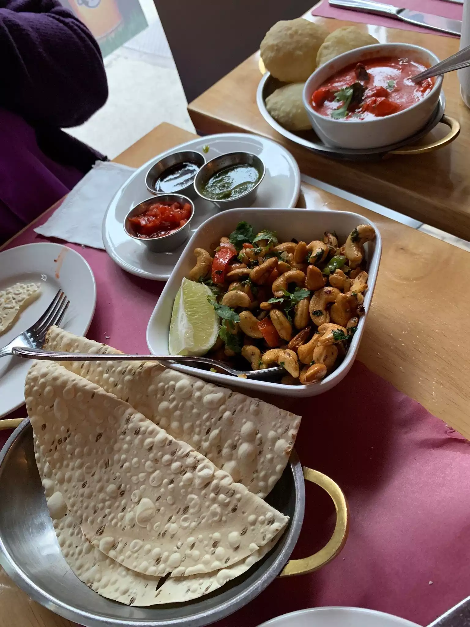 Our group included a vegan, vegetarian, and omnivores. This restaurant made everyone happy (even those who don't really care for Indian cuisine). I highly recommend the cashew appetizer. Lots of different naan to choose from as well. We had chicken marsala, chicken vindaloo, aloo saag, chole pujabi, tamarind eggplant, potato balls, and fried cheese.