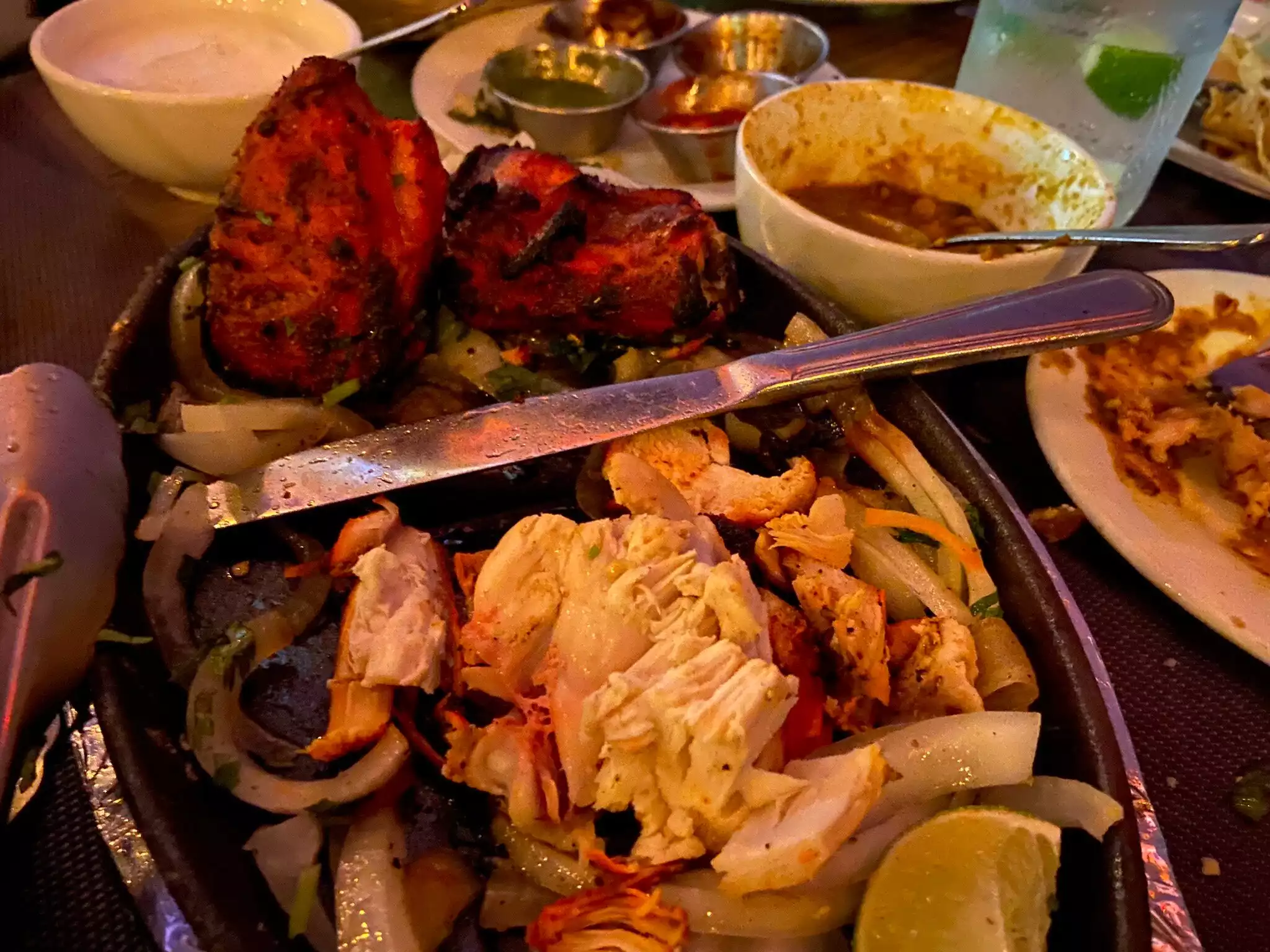 This one is a sad turn for lovers of authentic Indian food. The venue looks great and well decorated. The lighting is perfect. The crowd is not loud. A great place to hang out. The service needs improvement though. They promptly served papad with chutney. Papad was crunchy and fresh and chutneys were good too. The food was great but the service completely ruined the experience. The server was disinterested and unfocused. Just felt that they overcharge where they can - because they know they can.