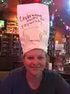 Don't come here if you are a stick in the mud! Lots of joking and interacting with the patrons goes on with the staff, yet they are very professional and efficient. We had the ribs and wings - both excellent. Great place to sit back and blow off steam! Good luck with your hat! (Go ahead and wear it and have fun!)