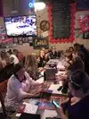 First time eating here and of course, you are at first a bit taken aback by the "atmosphere". The staff sling insults and rudeness on purpose, non-discriminating - and they know their audience. No profanity with the families and kids. But it was very loud and the "experience" only goes so far when the food is mediocre bar food at best.