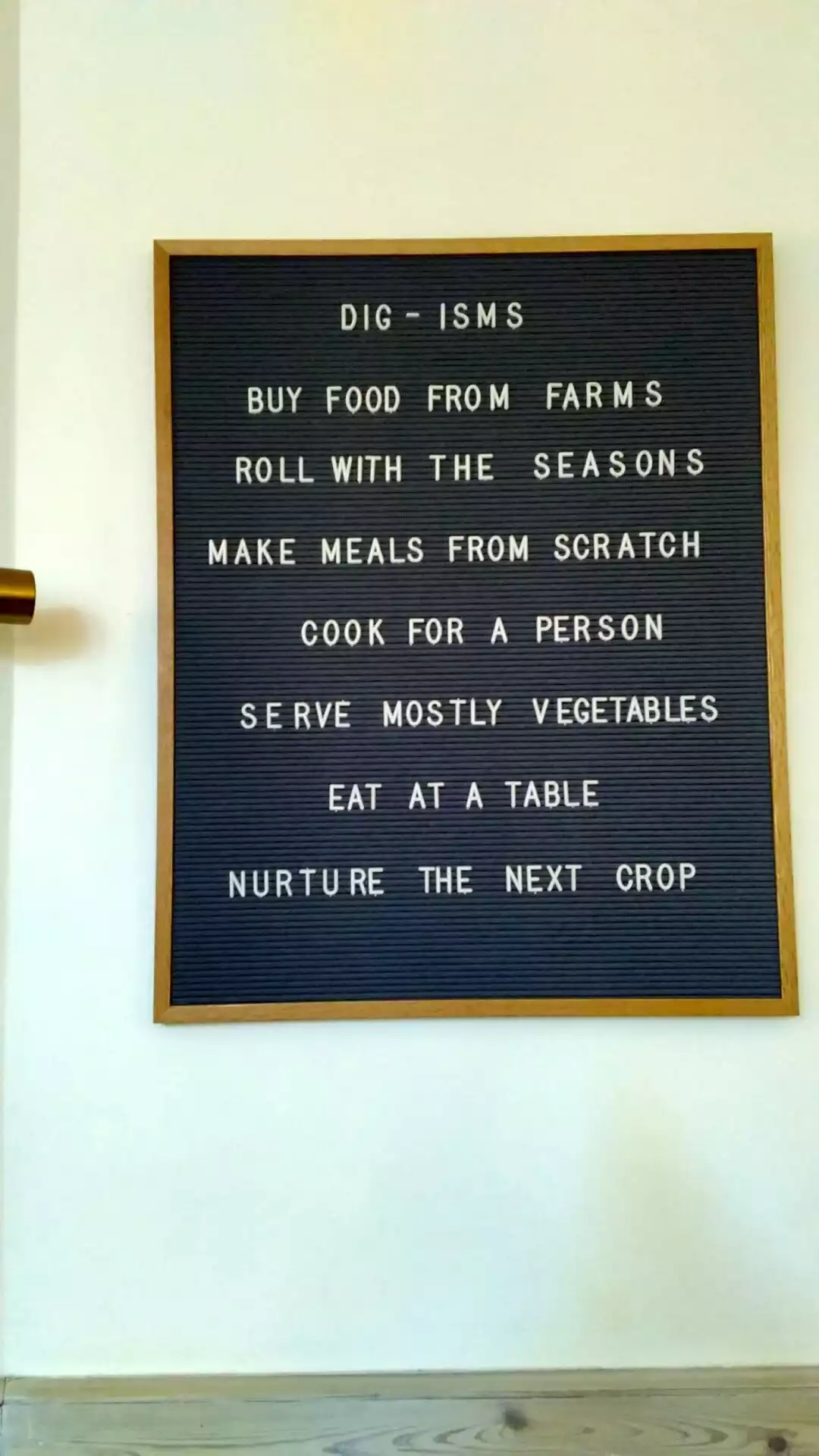 Although they have chicken as an option, this is a great restaurant for vegetarians and vegans, and for people who want to eat healthy and flavorful food, and quickly. It's like a Create-A-Meal, farm-to-container, fast food place. You order at the counter, and either take it with you, or eat it there; there's no table service. You start with choosing a "base" (although the foods are kept separately in the container), from a selection of 4 things (i.e. brown rice with parsely, farro with summer veggies and mint, field greens, and 1 other option, but I don't remember what it was.). I chose the farro, but didn't care for the mint in it. My daughter chose the brown rice, which she didn't really care for--but we prefer white rice. Then you choose 2 foods from a larger variety, to add to this, such as broccoli w/ lemon, cauliflower with parmesan and garlic, mac & cheese, tomatoes, marinated cucumbers, etc. I chose the broccoli, which was delicious, and the cauliflower which I found a little too garlicky. My daughter chose the mac & cheese, which I found just okay. She also chose the cauliflower, which she really enjoyed. You then choose an entree. I chose grilled salmon, which was excellent (A lot of the veggies are also grilled.)! Other choices included chicken, and grilled tofu. You can also get a side of a dressing. I took a garlic tofu thing, but didn't need to use it, and had 1/2 an avocado added to the dish, b/c I love avocado! The portions are ample, the workers are very nice, and there seemed to be enough seating, especially during a quiet time. The place did not look clean, though, and the ambiance is not warm and welcoming. My daughter had previously come to a Dig Inn with a friend, and brought me back because of her first experience. She said that her first experience was better.