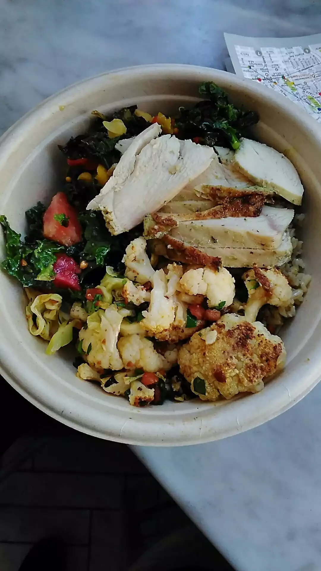 Really interesting concept. Good for you food. Limited assortment. Choose your base (rice, farro, greens), sides, protein. Sort of a healthy In-Out. Really enjoyed the brussel sprouts.
