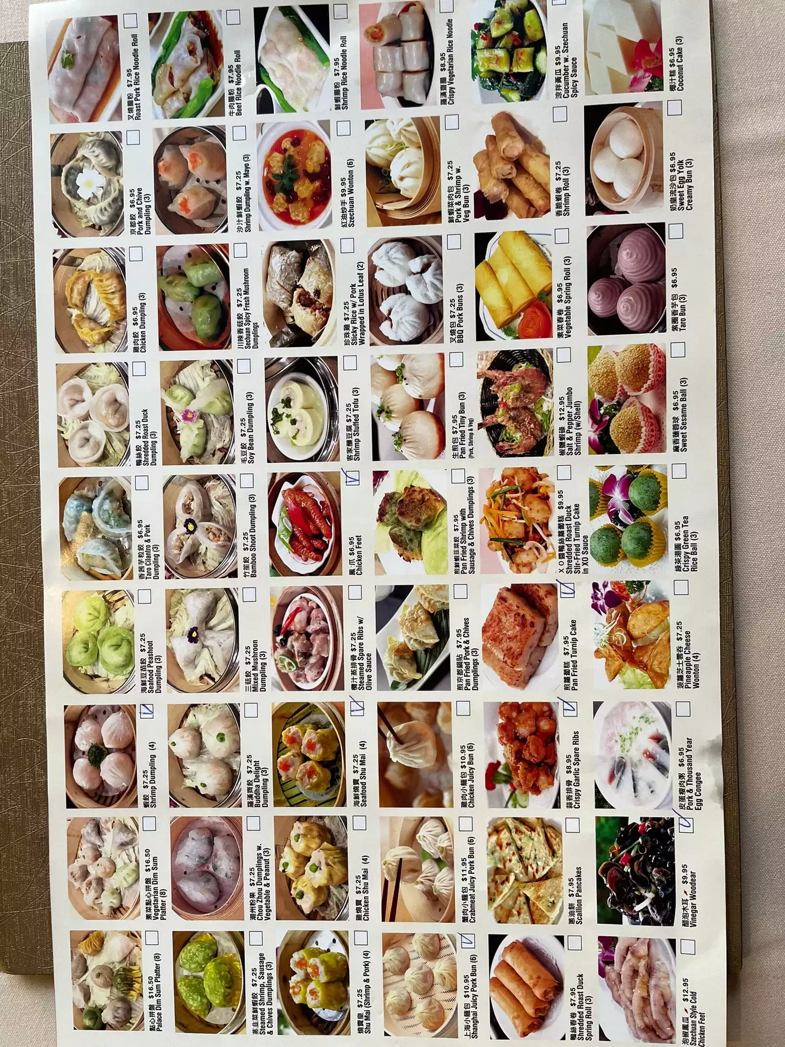 Dim Sum Palace has very good dim sum. This location is more comfortable than the 46th Street one. The dim sum menu has helpful pictures. Wait staff is quite good. Menu offers more than dim sum.